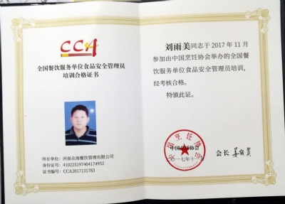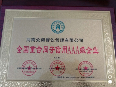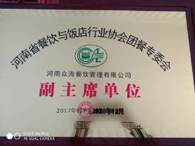 • 18-02-10熱烈祝賀河南眾海餐飲管理有限公司榮獲河南餐飲與飯店協(xié)會(huì)團(tuán)餐委